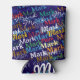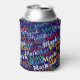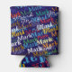 Typography pattern of colorful names (your own name) diagonally printed all over the dark blue background.
