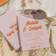 This wedding invitation is perfect for your wedding, if you are looking for an elegant unique and easy editable invitation .An elegant unique simple minimalist pink and orange wedding template invitation. Which features plain pink background. And orange fun bride's and groom's first names. . and editable info with trying the knot saying on the back. Affordable and it is also digital electronic e-invitation if you want to send it by text or email. All the info are customizable by clicking on the personalize button. So Grab it and make it yours so you make you invites engaged and excited .