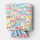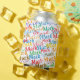 Typography pattern of colorful names (your own name) diagonally printed all over white background.