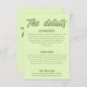 Simple and stylish retro colorful wedding guest info details. With light green pastel background and darker green text layout . All the info are customizable as website, transportation, accommodation . Grab it along with other products from this classy hand made retro wedding suite.
