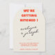 This wedding invitation is perfect for your wedding if you are looking for an elegant unique and easy editable arched invitation .An elegant unique simple minimalist cream wedding template invitation. Which features plain beige creamy background. And black hand lettered bride's and groom's first names and orange text layout of we're getting hitched. and customizable arch photo in the back . Affordable and it is also digital electronic e-invitation if you want to send it by text or email. All the info are customizable by clicking on the personalize button. So Grab it and make it yours so you make you invites engaged and excited .
