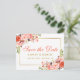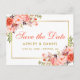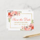 Modern Coral Floral Gold Save the Date Ankündigungspostkarte