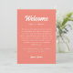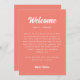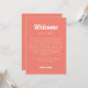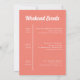Moderne Coral Pink Tour Weekend Tour Card. Fügen Sie Ihre Begrüßungsbotschaft für Familie und Gäste auf der Vorderseite und die Details Ihres Hochzeitswochenendes auf der Rückseite, wie Zeit und Lage Informationen. Sie können auch Schriftart, Farben usw. ändern, indem Sie auf "Personalisieren Sie diese Vorlage" klicken und dann auf "Bearbeiten mit dem Designwerkzeug" klicken. Bitte melden Sie den Designer, wenn Sie Änderungen für Sie vornehmen möchten.