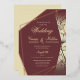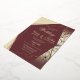 Eine moderne Hochzeitseinladung mit einem eleganten geometrischen Rahmen in schimmernder Goldfolie aus Rose. Die Hauptfarben sind Maron und Creme mit einem kunstvoll gepflegten Hintergrund. Rose Goldfolie schmückt die Hauptdetails mit der Erholung des Textes in einer passenden Cremefarbe. Calligraphie-Skript wird anmutig verwendet, um das Design zu vervollständigen.