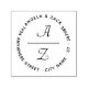Moderne und elegante Rücksendeadresse-Briefmarke mit den Initialen des Paares in einer eleganten Schrift mit locker Kalligraphie und Akzentuierung durch eine horizontale Trennlinie. Der Name und die Adresstext-Platzhalter rahmen die Initialen in einem runden Design und sind Set in einer modernen serifenlosen Schrift.