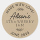 Modernes, benutzerdefiniertes Kraft-Rundholzbeschlag. Kennzeichnen Sie Ihre selbst gemachten Geschenke ohne den hohen Preis. Dieses moderne, maßgeschneiderte Rund-Canning Jar Label eignet sich perfekt für Konfitüren, Salsa oder andere Geschenke in einem Glas.