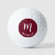 Modern Custom Maroon Monogram Name Golf Balls Golfball