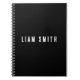 Modernes, individuelles Notebook in schwarz mit weißem Namen. Passen Sie Ihren Namen an, um Ihr personalisiertes Notebook zu erstellen. Klicken Sie auf Weiter, wenn Sie gewollt haben, die Hintergrund- und Schriftart-Farben zu ändern. Vielen Dank, dass Sie bei "Ink&Lena Stationery" angehalten und unsere Designs ausgewählt haben.