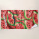 Summer Vibes | Moderne Custom Name Fun Watermelon Beach Handtuch, Sweet Watermelon Beach Handtücher mit Custom Text, ein Effekt, der uns träumen von einem hellen Sommertag am Strand. Der Sommer ist die perfekte Zeit, um kühn und fröhlich zu flattern, und mit dieser Palette wird Ihr Sommertag am Strand voller fröhlicher Lächeln und fröhlicher Energie sein! Die Farben sind lustig und spielerisch, machen diese Palette schön und voller lustiger Sommervibes. Diese fröhliche Palette ist ideal für böhmische Sommerthemen.