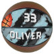 Moderner Basketball für den benutzerdefinierten Spielernamen und -nummer. Aquarellfarbene Hintergrundtextur in Blau und Schwarz. Personalisieren Sie es mit Ihrer Spielernummer und Ihrem Spielernamen. Das Design hat einen Basketball zeichnend. Ein großartiger personalisierter Basketball-Sake, um sich an den Lieblingssport zu erinnern.