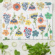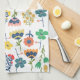 Modern cute botanical pattern Pink Blue yellow Geschirrtuch