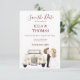 This elegant save-the-date wedding invitation features a timeless design centered around a beautifully illustrated antique wedding car, evoking a sense of vintage romance and charm. Beside it, a bride and groom share a tender kiss, capturing the joy and intimacy of the special moment. The text is presented in a rich burgundy hue, adding warmth and sophistication while standing out gracefully against the background. Thoughtfully designed to be fully customisable, every detail—from names and dates to key information—can be tailored to reflect your unique celebration.