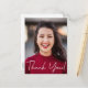 Personalisieren Sie diesen modernen Abschluss Dankeschön Postcard mit dem Foto, dem Namen, dem Jahrgang und dem Namen des Absolventen. Fügen Sie eine besondere Danksagung auf der Rückseite, Ihre Rücksendeadresse und Ihren Namen. Moderne Schrift Schriftart Typografie, elegant und chic. Vielen Dank Karten sind eine durchdachte Art, Ihre Familie und Freunde behalten verbunden und erinnern sie ihre Großzügigkeit und geschätzt.