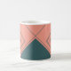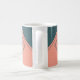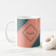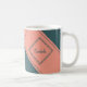 Diese Tasse ist in einem geometrischen, zweifarbigen, aquamarinen und blasslachsfarbenen Design mit Namenstext auf beiden Seiten des Griffs in einem Doppeldiamanten untergebracht. Personalisieren Sie den Namen im Textfeld. Die Änderung erfolgt auf beiden Seiten des Handles.