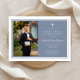 Modern Dusty Blue Boy Photo First Communion Einladung
