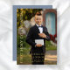 Modern Dusty Blue Foto Boy First Communion Gold Folieneinladung