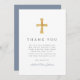 Modern Dusty Blue Religious Boy First Communion Thank You Card.
