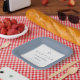 Modern Dusty Blue Religius Cross Boy Baptism Square Paper Plates.