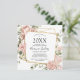 Moderne rosafarbene rosa Rosen schaffen einen runden botanischen Rahmen auf diesem quadratischen Abschluss. Die hübschen Rose sind in üppig grünen Blätter und Blättern eingebettet. Viel weiße Räume geben ein offenes und luftiges Ambiente. Gold Zahlen und Rahmen fügen ein luxuriöses Gefühl.