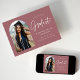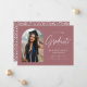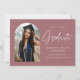 Trendy Abschluss Ankündigung mit dem Foto des Absolventen gerahmt durch eine staubige Rose mit "Graduate" in einem weißen handgeschriebenen Skript. Personalisieren Sie die Vorderseite der Erzankündigungskarte, indem Sie den Namen des Absolventen, das Abschluss Jahr, den Schulnamen und die Zukunftspläne hinzufügen. Die Ankündigung des Foto Abschlusses kehrt zurück, um eine staubige Rose und ein weiß gepunktetes Muster anzuzeigen. Die Ankündigung eignet sich sowohl für Absolventen der Highschool als auch für Absolventen der Uni.