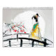 A contemporary tribute to Chinese tradition through expressive ink and watercolor art. Each month reveals a new scene: autumn temples bathed in golden light, cherry blossoms in spring, lotus ponds in summer, and quiet winter landscapes. People in traditional dress, poetic architecture, and nature in motion create a harmonious journey through the year.