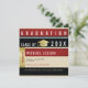 Black and red stripes with the image of a Gold hat and custom graduation party information... a stylish and modern rsvp design