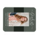 Schöner Ankündigungs-Magnet für 1 Foto Abschluss. Moderner Text mit elegantem Kalligrafieschrift in Weiß in Weissgrün. Um mehr zu sehen, besuchen Sie meinen Shop hier unter "www.Zazzle.com/LakeViewCardCo". Danke