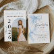 Modern Elegant Blue Bow Arch Photo Graduation Invitation