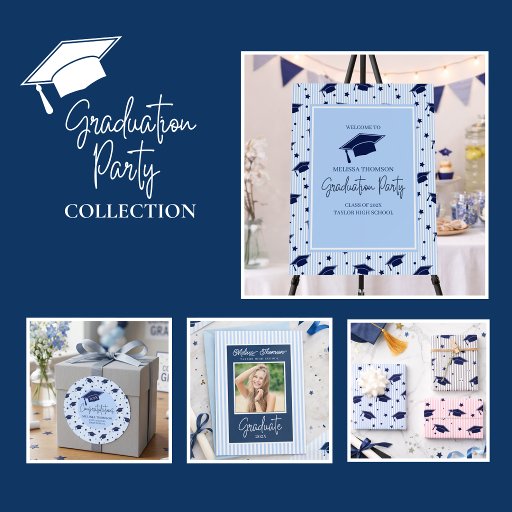 Modern Blue White Graduation Party Celebration Designt von Melissa G