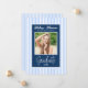 Celebrate your graduate in style with this elegant blue and white graduation announcement card, featuring a classic script design, soft striped background, and a personalized photo of your graduate. Perfect for sharing this milestone moment with family and friends, this design blends timeless charm with a modern, preppy aesthetic. Ideal for high school, college, or university graduations.