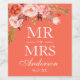 Modern Elegant Coral Floral Mr. and Mrs. Wedding Weinetikett