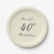 Modern Elegant Cream 40th Birthday Party Pappteller