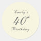 Modern Elegant Cream 40th Birthday Party Runder Aufkleber