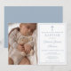 Modern Elegant Dusty Blue Photo Baptism Einladung
