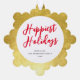 These wonderful paper ornament cards feature an elegant faux gold foil background. On the front of the card is a simple round photo shape. On the back is an EDITABLE script greeting in red with your text in a classic serif font. These ornaments make a fabulous holiday card that will then become a keepsake that can be displayed on the Christmas tree. They are also wonderful as gift tags!