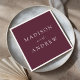 The elegant, personalized purple wedding napkins are perfect for your wedding reception, rehearsal dinner, engagement party, and more! The minimalist purple wedding napkins are perfect for summer, fall, winter, and spring weddings. The design features a chic modern calligraphy script with your names in white lettering against a wine-purple background. The design coordinates with our Modern Elegance Wine wedding collection.