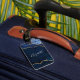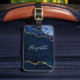 Moderne elegante Watercolor Blue und Gold Marble Agate Geode Gepäckmarke personalisiert mit Ihrem Namen in stilvollem Skript.
