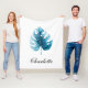 Modernes Fleecedeckendesign mit ursprünglich handgemalten Aquarellmonstera-Blatt. Text ist anpassbar.
