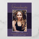 Eine einzigartige Foto Abschluss-Ankündigungskarte mit Designelementen in elegantem, handgeschriebenem Stil. Das Wort "Graduate" und die Absolventen Namen in realer Folie (Folie Farbe Optionen sind Gold, Silber und Rose). Das Foto der Absolventen ist dünn in einem weißen Rahmen und dekorativen gewellten Trimm gekleidet. Das Design wird durch einen Hintergrund in lila und violetten Tönen ergänzt. Die Rückseite der Karte bietet einen personalisierten Anzeigentext für diesen Diplom. Um mehr zu sehen, besuchen Sie meinen Shop hier unter "www.Zazzle.com/LakeViewCardCo". Danke