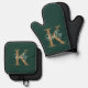 Modern Emerald Green Gold Monogram Script Ofenhandschuh & Topflappen-Set