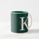 Modern Emerald Green Monogram Script Zweifarbige Tasse