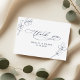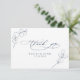 These thank you cards feature a crisp white background with deep navy blue text. Fine botanical eucalyptus leaves appear in simple line art, creating a fresh and elegant look. The design offers a modern and refined style that matches any navy blue and greenery wedding theme. It provides a calm and graceful way to thank your guests.