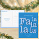Einfach zu personalisieren, einfach zu personalisieren diese einfachen modernen Fa la la la la la la la Foto keine Weihnachtskarten mit Ihrem Namen für einen lustigen Weg, um Ferien Freude zu verbreiten. Das minimalistische Typografie-Design zeichnet sich durch fette Schriftzeichen in Weich-Pastellblau mit dunklem Schlagschatten und hellblauem Hintergrund aus. Am unteren Rand befindet sich eine Textvorlage für Ihren Namen und das Jahr. Jede Fa la la la la la Postcard Ferienkarte kehrt zu einem soliden Weiß mit einem hellblauen lila Rahmen, Platz für Ihre Rücksendeadresse und eine Textvorlage für Ihren Weihnachtsstext zurück oder Sie können die Platzhaltermeldung entfernen. Diese personalisierten, nicht-Foto-Typografie-Postkartenkarten in trendigen Weihnachtsfarben von Himmelblau und Pastellblau vermischen Laune und Tradition mit modernem minimalem Grafikdesign.
