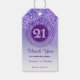On the back of the gift tag, there is another stylish Purple Wheel number 21 design.