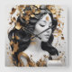 This striking black‑and‑gold illustration showcases a graceful woman surrounded by shimmering gold leaves and butterflies. The contrast between the soft grayscale portrait and the metallic accents creates a luxurious, eye‑catching piece ideal for home décor, office walls, or gifting. A beautiful choice for art lovers who enjoy fantasy, glamour, and contemporary artwork.