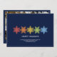 Eine moderne Weihnachtskarte mit einer Reihe von bunten Weihnachtsschneeflocken und familiärem Foto. Minimalistische Typografie. Sauberes einfaches Design. Alle Textbereiche sind personalisierbar. Kontaktieren Sie uns für Hilfe bei der Personalisierung oder Anpassung an Ihre individuellen Wünsche. Gute Ferien!