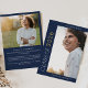Diese moderne Fete Marine und Gold 2024 Foto Abschluss Ankündigung Karte ist die perfekte einfache High School oder Uni grad Ankündigung. Das Design besticht durch eine elegante boho Typografie mit einer Touch von elegantem Stil in klassischem Marineblau und Gelbgold. Personalisieren Sie die Vorderseite der Karte mit einem Foto, Ihrem Absolventen-Namen und dem Jahr der Klasse. Fügen Sie ein zusätzliches Foto und eine längere Meldung auf der Kartenrückseite ein.