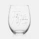 Modern Minimal Fifty and Fabulous black name date 50th birthday stemless wine glass that you can personalize for your fiftieth birthday party celebration. The words "Fifty and Fabulous" are set using trending script font typography. Text colors can be changed using the edit menu.
