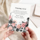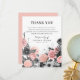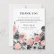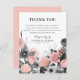 Personalisierte Begräbniskarte, die Sie an Freunde und Verwandte schicken können, die Ihnen Liebe und Freundlichkeit während Ihrer Trauerzeit gezeigt haben. Mit klassisch weißem Hintergrund und einer Anzeige mit rosa und schwarzen Blume und Blattwerk. Der gesamte Text lässt sich mithilfe der bereitgestellten Vorlage leicht anpassen.