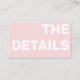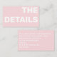 Diese moderne Gehäusekarte bietet eine große, fette, lustige Schrift für "DIE DETAILS" in hellrosa mit leicht lesbarer weißer Typografie und schafft so einen lebendigen und minimalistischen Look. Es ist perfekt für Hochzeiten oder Party geeignet und bietet Platz, um wichtige Orte, UAWG und Empfang Informationen in einem einfachen Stil Gäste finden klar und zugänglich. Passen Sie die Nachricht an den Anzug jeder Feier an und machen Sie diese Karte zu einer stilvollen und praktischen Ergänzung zu Ihrem Veranstaltungsportfolio.